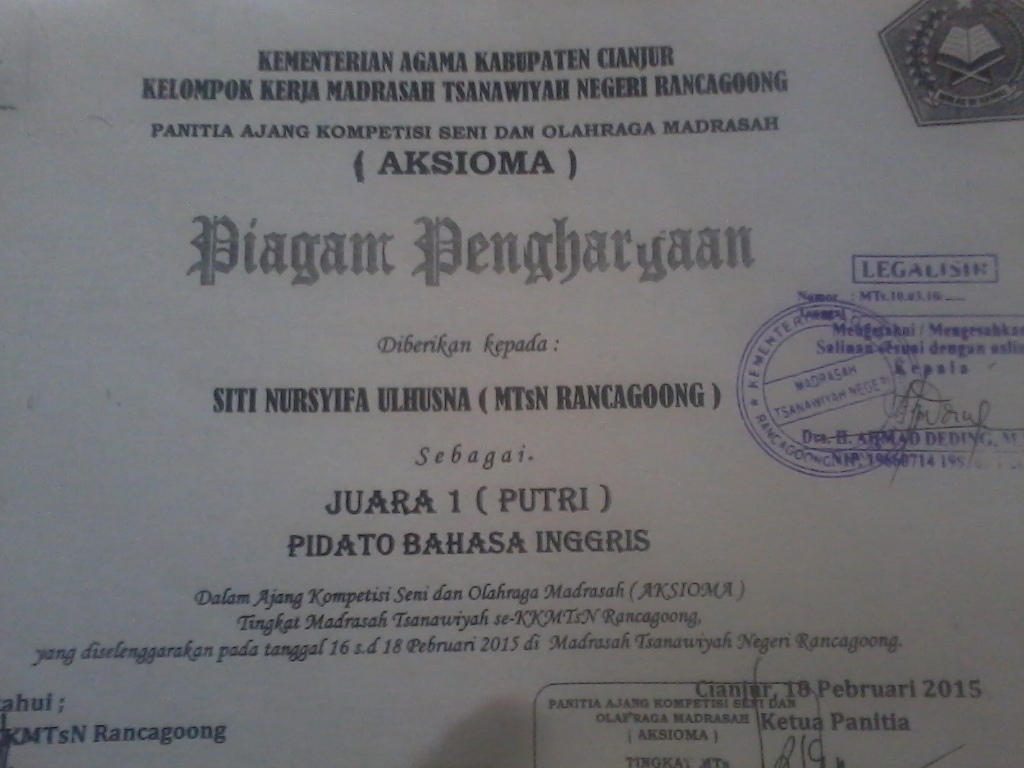 piagam aksioma rancagoong Piagam Juara AKSIOMA tingkat kecamatan yang ditolak untuk jalur prestasi pada PPDB di SMAN 1 Cianjur (dok. KM) KupasMerdeka.com Berita Cianjur