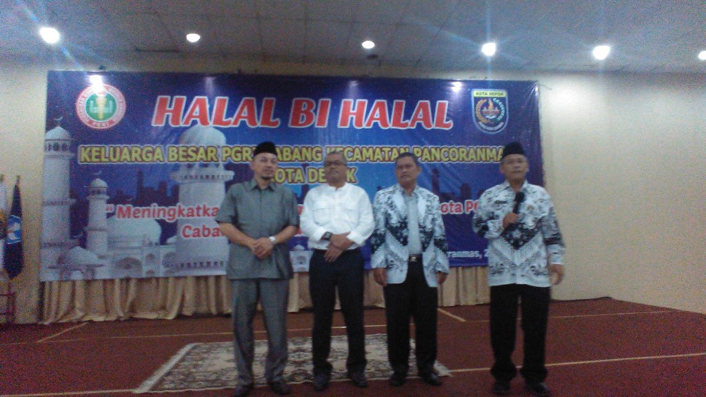 halal bihalal pgri panmas (kiri-kanan) Ketua Dewan Pendidikan kota Depok Hafiz Nasir, Ketua PGRI Pancoran Mas, Abu Tholib, Ketua PGRI kota Depok H. Syamsudin (dok. KM) KupasMerdeka.com Berita Depok