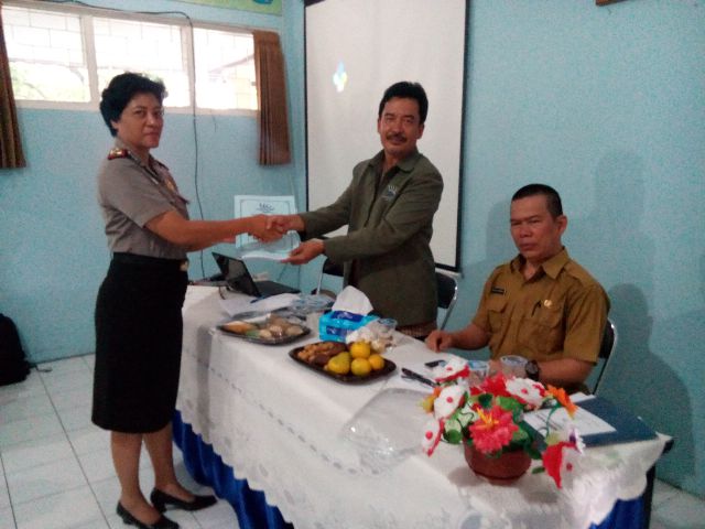 Ketua Dewan Pendidikan kota Bogor, Dr. Ir. Affandi Arsyad menyatakan dokumen kepada AKP. Diana yang mewakili Kapolres Bogor disaksikan Kadisdik Edgar Suratman
