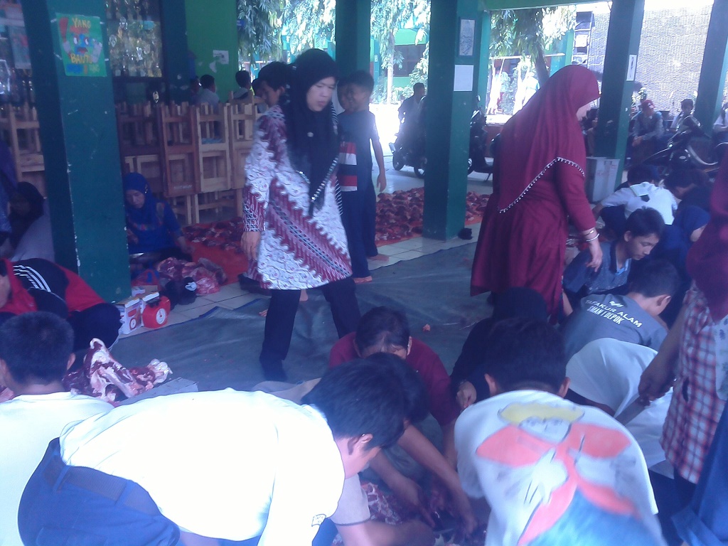 kurban smp 1 depok Guru beserta siswa SMPN 1 Depok menyiapkan potongan hewan qurban untk dibagikan (dok. KM) KupasMerdeka.com Berita Depok