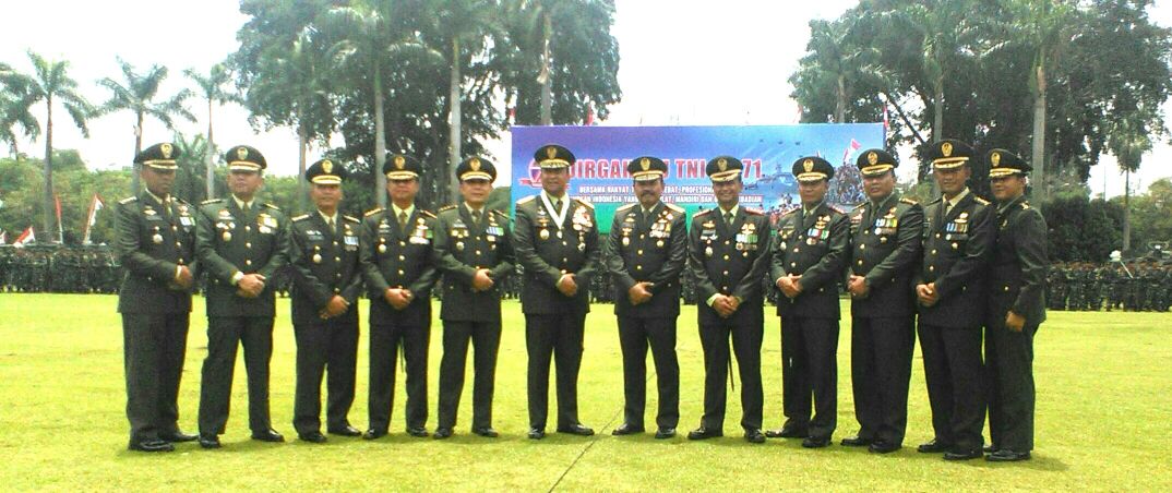 mayjen-teddy-lhaksmana-wk Panglima Kodam Jaya Mayor Jenderal TNI Teddy Lhaskmana W. K. (tengah) bersama sejumlah perwira TNI lainnya pada perayaan HUT TNI ke-71 di Lapangan Apel Kodam Jaya, Cawang (dok. KM) KupasMerdeka.com Berita Jakarta