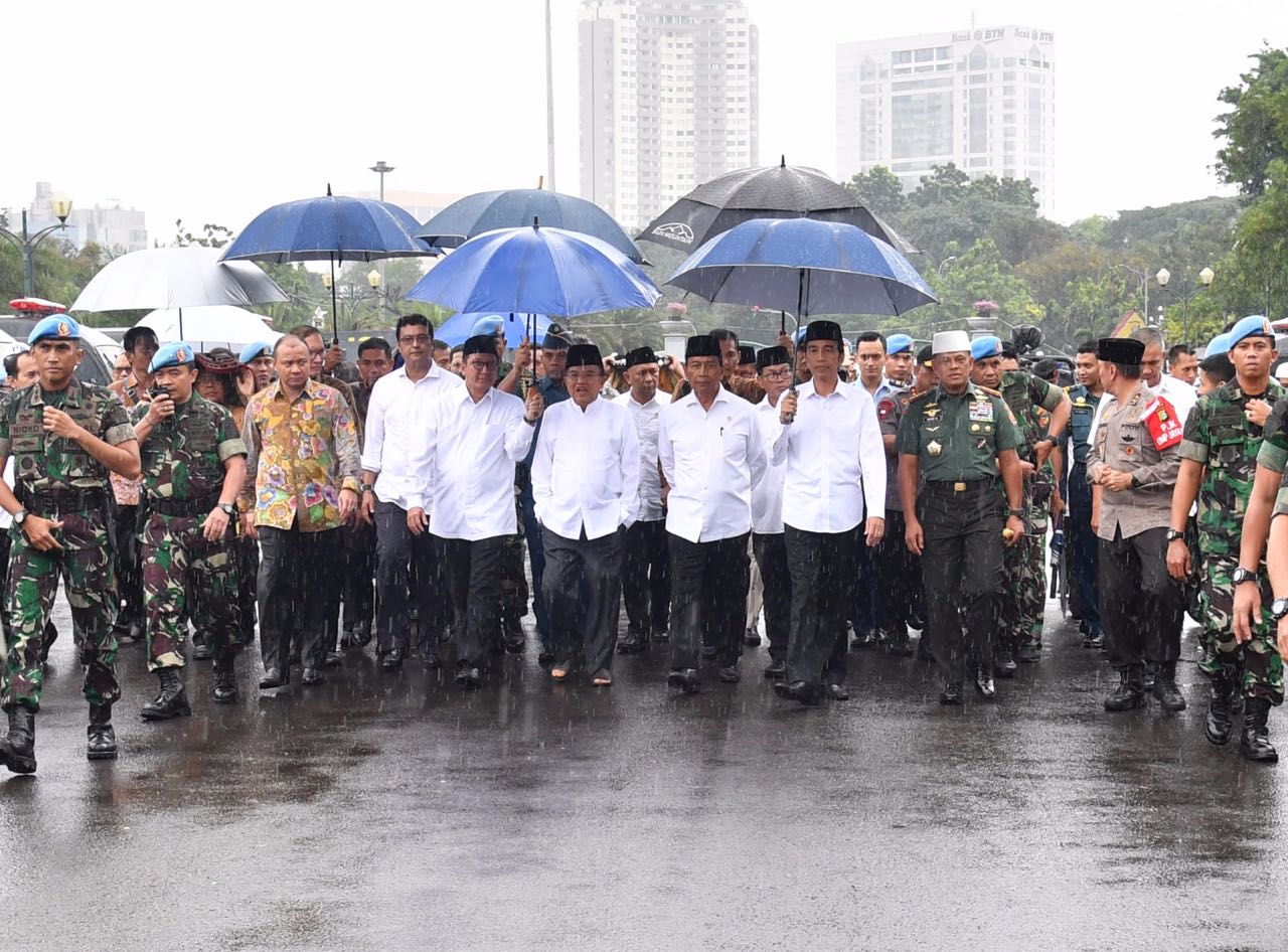 rombongan-presiden-212 Presiden RI dan rombongannya berjalan dari Istana Merdeka menuju Monas untuk mengikuti aksi "Bela Islam III" di Monas, Jakarta Pusat (dok. KM) KuoasMerdeka.com Berita Nasional