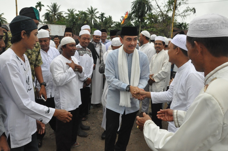 zumi zola jambi-KM Warga menyambut kedatangan Gubernur Jambi Zumi Zola dalam acara Isra' Mi'raj di Tanjung Jabung Barat, Minggu 2/4 (dok. KM) KupasMerdeka.com berita Jambi