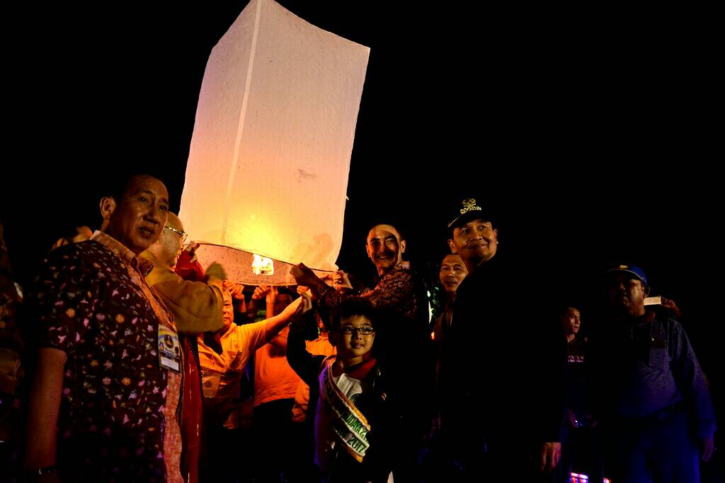 zola lampion Gubernur Jambi Zumi Zola (tengah) saat melepaskan lampion pertama pada perayaan Waisak di kompleks candi Muaro Jambi, 11/5 (dok. KM) KupasMerdeka.com Berita Jambi