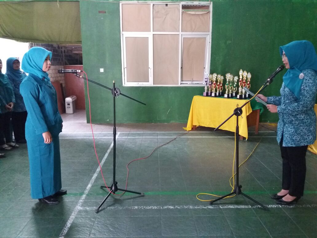 IMG-20170706-WA0002 Fitrirani, ketua PKK Desa Warung Menteng saat dilantik di aula gedung Kecamatan Cijeruk, Rabu 5/7 (dok. KM)