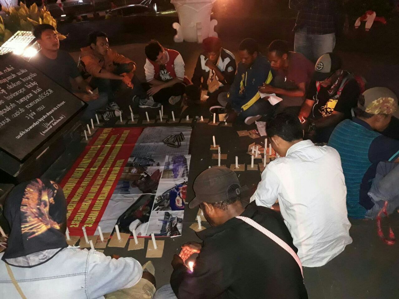 aksi lilin pmkri1-KM Aksi "1000 Lilin" oleh puluhan aktivis mahasiswa Papua di Kota Bogor, Rabu 9/8 (dok. KM) KupasMerdeka.com Berita Bogor