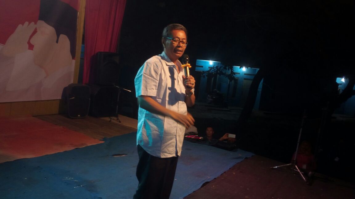 Lurah Jatiwarna Edi Purwanto saat memberikan sambutan pada acara pentas seni warga, Sabtu 26/8 (dok. KM)