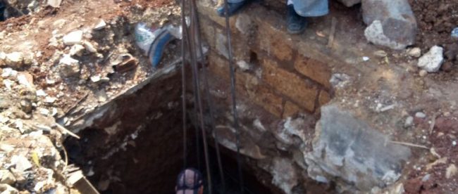 Pekerjaan pembuatan pondasi cakar ayam di lokasi pembangunan SMPN 22 Depok (dok. KM)