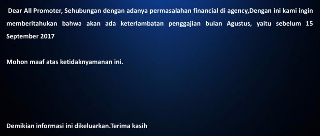“Sampai saat ini karyawan belum mendapatkan gajinya berikut insentif bulan Juli dan pihak perusahaan meminta waktu sampai tanggal 15 September. Padahal mereka sangat membutuhkan dengan adanya Lebaran Idul Adha ini,” ujarnya.