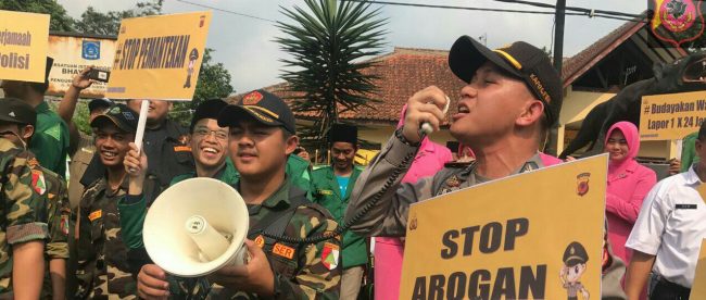 BOGOR (KM) – Sekitar 200 orang lebih dari berbagai elemen masyarakat “menyerbu” Polsek Caringin, dari unsur Muspika, ormas Islam, club vespa, anak sekolah, Pramuka, linmas dan organisasi radio antar penduduk (RAPI), Rabu 25/10.