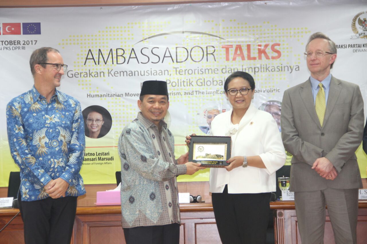 pks-ambassador talks (kiri-kanan) Dubes Rusia Mikhail Yuriecich Galuzin, Ketua Fraksi PKS Jazuli Juwaini, Menlu Retno Marsudi, dan perwakilan Dubes UE Rafael de Bustamante Tello (dok. KM) KupasMerdeka.com BErita Nasional