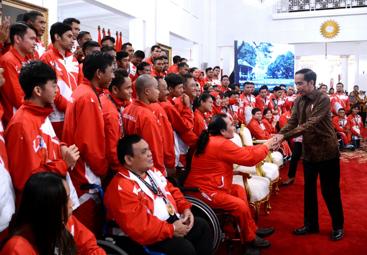 presiden jokowi-atlet para games Presiden Joko Widodo menyambut kontingen Indonesia dalam ASEAN Para Games 2017 di Istana Negara, Senin 2/10 (dok. KM) KupasMerdeka.com Berita Nasional