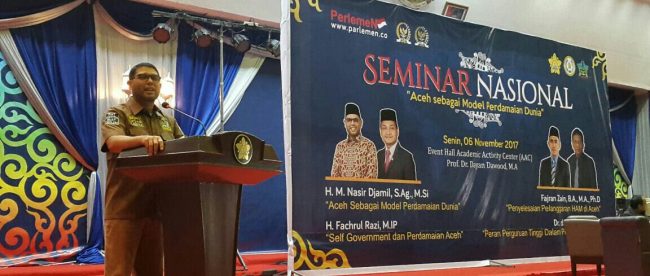 Harapan itu disampaikan Nasir Djamil saat menjadi narasumber pada acara Seminar Nasional dengan tema “Aceh Sebagai Model Perdamaian Dunia” yang diselanggarakan oleh Badan Eksekutif Mahasiswa (BEM) Universitas Syiah Kuala Banda Aceh, Senin (6/11/2017).