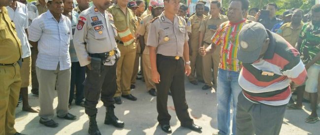 SORONG (KM) – Buntut sengketa lahan yang diakui sebagai tanah milik adat, puluhan anggota suku Marga Anni melakukan aksi pemblokiran terhadap kantor Bupati Sorong Selatan dengan kain adat Papua, dimana apabila sesuatu hal dipalang atau di blokir dengan menggantungkan kain adat Papua, maka pemblokiran tersebut tidak dapat dibuka kecuali diselesaikan secara adat. Demikian juga halnya pemblokiran yang dilakukan Marga Anni terhadap kantor Bupati, yang melumpuhkan aktifitas pelayanan, Senin (20/11).