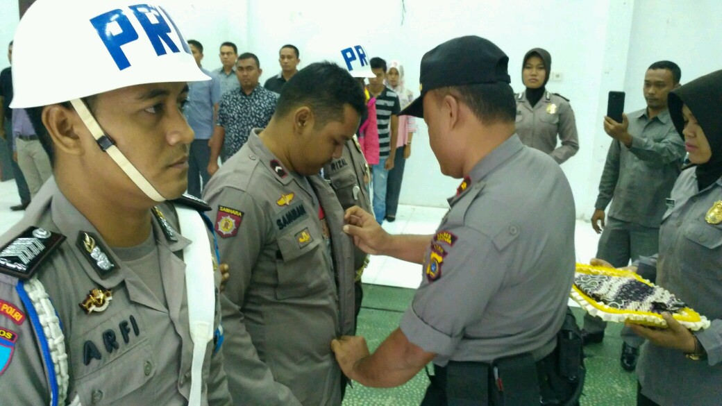 upacara ptdh aceh utara Wakapolres Aceh Utara Kompol Suwito memakaikan baju batik kepada personel yang diberhentikan tidak hormat (photo/rils/Ist) KupasMerdeka.com Berita Aceh