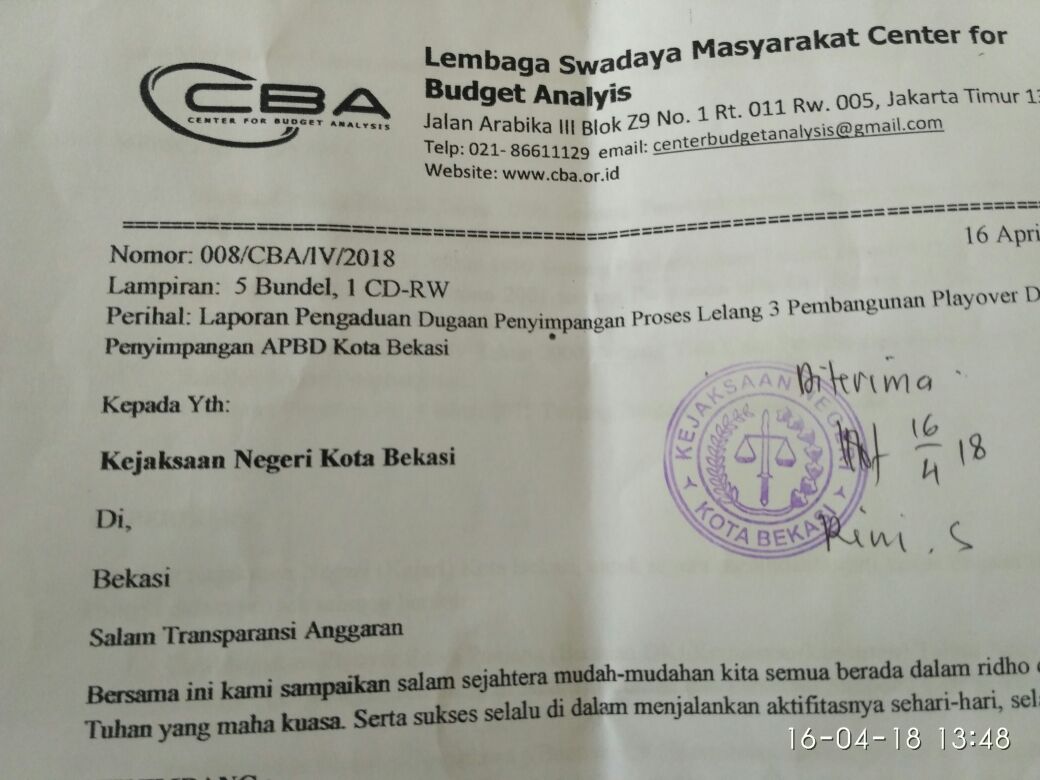 Laporan CBA kepada Kejaksaan Negeri Kota Bekasi (dok. KM)