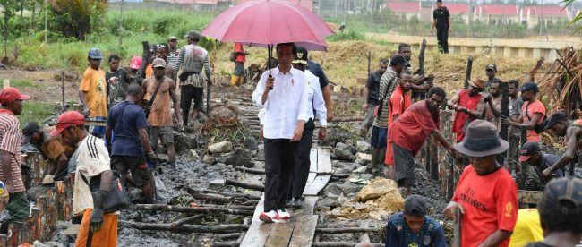 SORONG, PAPUA BARAT (KM) – Selama ini program padat karya tunai dilaksanakan oleh pemerintah melalui beberapa kementerian. Dalam kunjungan kerja ke Provinsi Papua Barat, saat meninjau program padat karya Kementerian PU dan Perumahan Rakyat, Presiden Joko Widodo berharap pemerintah daerah dapat menjalankan program padat karya tunai yang dibiayai APBD.
