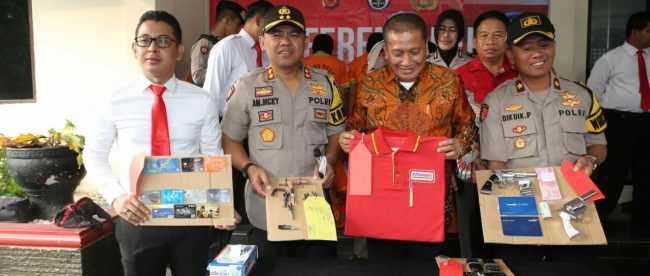 “Modus operandi pelaku melakukan perbuatan curas dengan masuk ke toko Alfamart/Indomaret yang akan tutup, kemudian menodongkan kasir dengan senpi kemudian mengambil yang hasil penjualan berikut barang-barang milik Alfamart/Indomaret. Selain melakukan perbuatan curas di Alfamart/Indomaret, pelalu juga melakukan pencurian dengan pemberatan dengan modus ganjal ATM serta curanmor,” papar Kapolres.