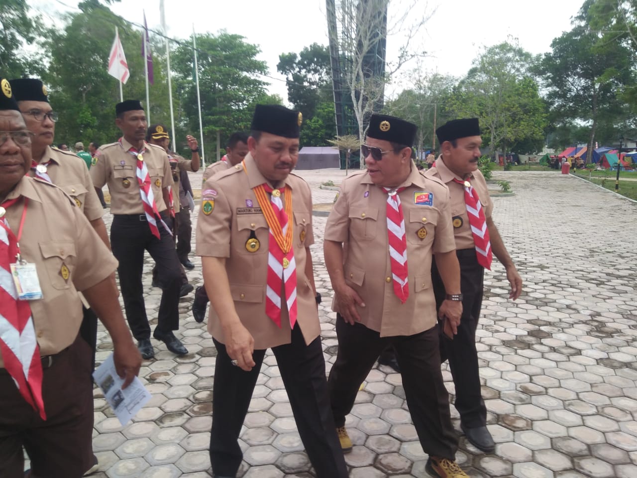 Ka Kwarcab Kota Langsa Marzuki Hamid, bersama Ka Kwardari Djufri Efendi hadir dalam kegiatan pembukaan serta menjadi inspektur upacara pembukaan kegiatan Rover Adventure & Camp Korwil I Kwartir Aceh, yang bertempat di Hutan Wisata Kota Langsa, Jumat 11/10 (dok. Muddin/KM)