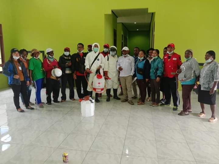 deiyai Kepala Dinas Kesehatan Kabupaten Deiyai bersama para pemuda bersiap untuk penyemprotan cairan disinfektan di tempat-tempat sentral di Kabupaten Deiyai, Papua, Sabtu 28/3/2020 (dok. KM) KupasMerdeka.com Berita Deiyai