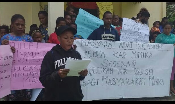 Puluhan pemuda dan masyarakat adat yang tergabung dalam Masyarakat Adat Independen (MAI) melaksanakan Aksi berbagi selebaran dan membacakan pernyataan sikap memperingati Hari Air Internasional, Minggu 22/3/2020 (dok. KM)