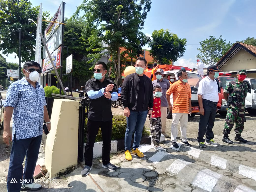 sedulur-karanganyar-semprot Sugeng Budiawan didampingi Kapolres dan segenap Sedulur Karanganyar Kebumen apel sebelum melakukan aksi penyemprotan mencegah covid-19 di jalan utama Karanganyar pada Minggu 5/4/2020 (dok. KM) KupasMerdeka.com Berita Jateng