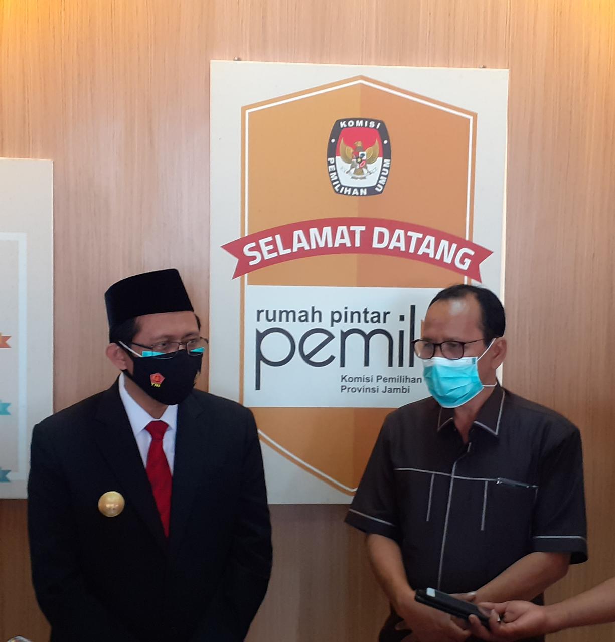 pj gub kpu jambi Pj. Gubernur Jambi dan Ketua KPU Provinsi Jambi saat memberi keterangan kepada media (dok. KM) KupasMerdeka.com Berita Jambi