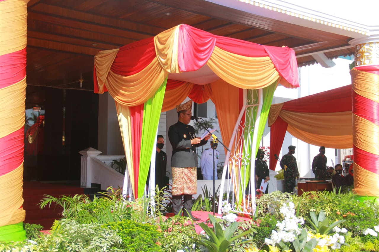 Plt.Gubernur Bengkulu Dedy Ermansyah saat menjadi inspektur upacara pada HUT Peringatan hari jadi Provinsi Bengkulu ke 52,Rabu 18/11/2020