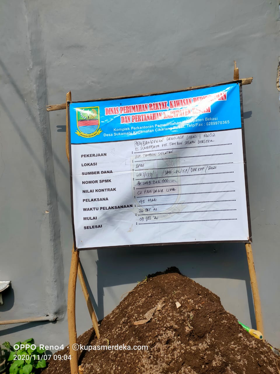 tambunsel1 Papan kegiatan Saluran Menggunakan U-ditch di Kp. Rawa Pisang, Desa Sumber Jaya, Tambun Selatan, Kabupaten Bekasi (dok. KM) KupasMerdeka.com Berita Bekasi