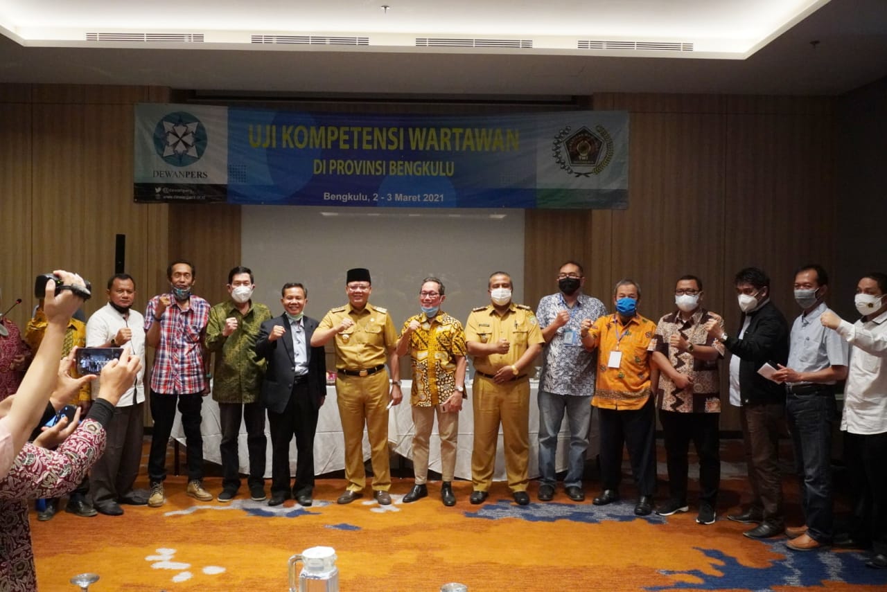 Gubernur Bengkulu foto bersama saat membuka kegiatan Uji Kompetensi Wartawan (UKW) Persatuan Wartawan Indonesia (PWI) angkatan ke-XIII di Hotel Mercure Selasa pagi (02/03/21)