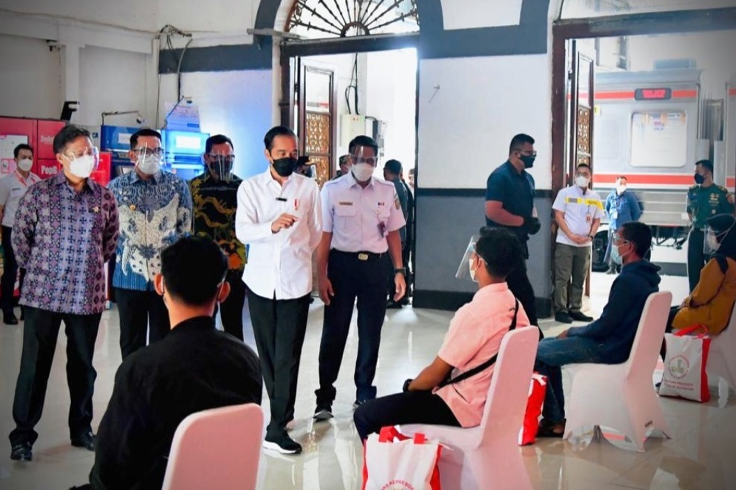 jok bgr b56a034d-2847-4bee-8d4a-a8672b44c03c Presiden Joko Widodo saat meninjau pelaksanaan Vaksinasi di Stasiun Bogor (dok. Biro Pers Kepresidenan) KupasMerdeka.com Berita Nasional