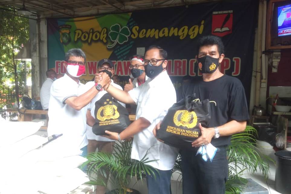 Indonesia Civilian Police Watch (ICPW) bekerja sama dengan Polri beri bantuan sembako pada wartawan lingkup Mabes Polri Selasa (17/8/2021)