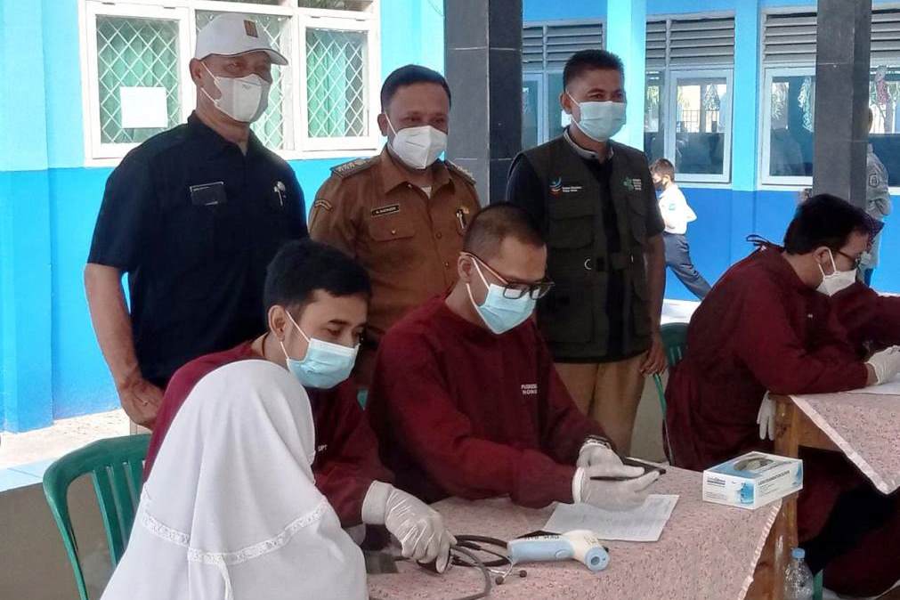 400 Pelajar SMPN I Binong mengikuti gebyar vaksinasi Covid-19 anak usia 12-17 tahun di aula SMPN I Binong, Kabupaten Subang pada Selasa (31/8)