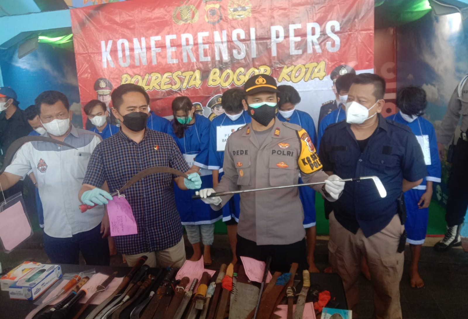 Konferensi pers Polresta Bogor Kota yag telah amankan 15 pelaku tawuran antar kelompok dan geng di halaman lobby utama Mall BTM, Rabu (22/9/2021)