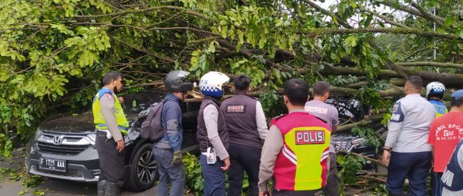 BOGOR (KM) – Satu pohon besar jenis Sapu Tangan (Maniltoa Grandiflora) ambruk menimpa tiga unit kendaraan roda empat, tepatnya di depan Gedung Kusnoto LIPI di Jalan Djuanda, Kecamatan Bogor Tengah, pada Minggu (17/7).