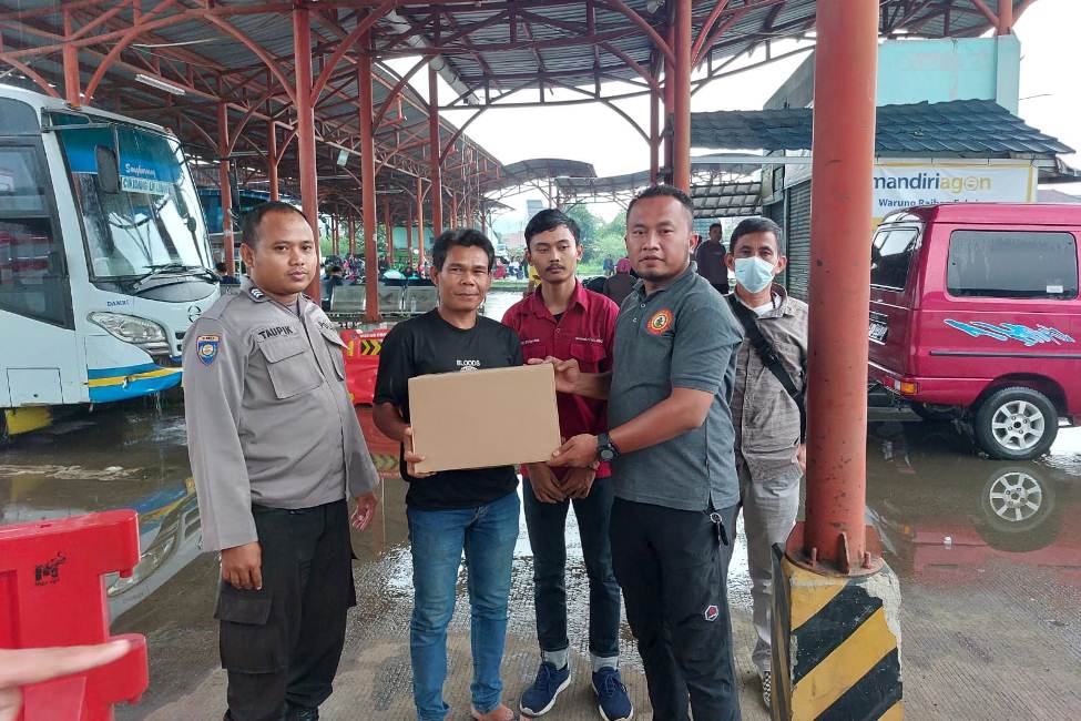 Polres Bogor membagikan 50 paket sembako di terminal Leuwiliang dan sekitarnya Jumat 9/9/2022.