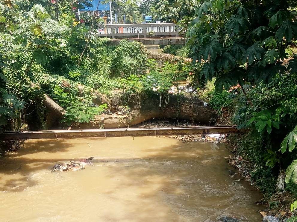 Pohon besar di bantaran kali yang belum diangkat