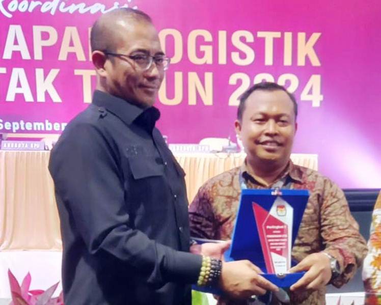 f0e3aa05-f209-4058-8b4b-fd3a996a7c8e Penghargaan sebagai pengguna LPSE terbaik diberikan Ketua KPU RI, Hasyim Asy'ari kepada Ketua KPU Kota Bogor, Samsudin