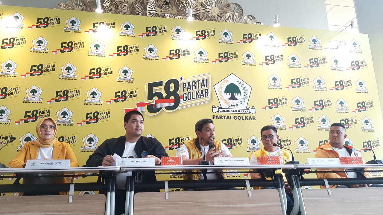 Ketua Panitia Penyelenggara HUT ke-58 Partai Golkar, Maman Abdurahman (tengah) dan Ketua SC Tb Ace Hasan Syadzily (kedua kanan), di Kantor DPP Partai Golkar, Jalan Anggrek Nelly Murni, Jakarta Barat, Jum'at sore (14/10/2022) (Dok. Hari Setiawan Muhammad Yasin/KM).