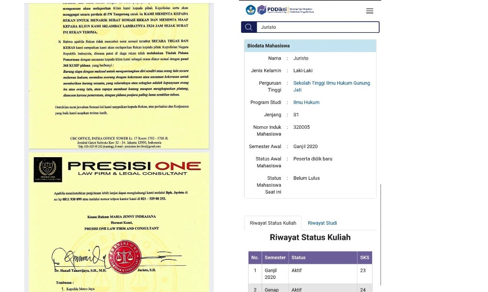 Somasi dan bukti Juristo belum belum sarjana hukum