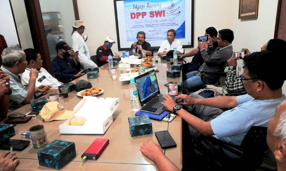 Diskusi Ahli Pers dengan Dewan Pimpinan Pusat (DPP) Sekber Wartawan Indonesia (SWI) pada acara Ngopi Bareng, pada Jumat (20/1/2023)