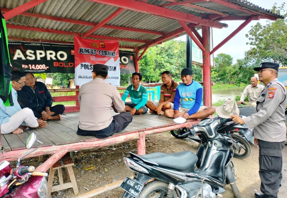 Kapolsek Anjatan AKP Heriyanto melakukan kegiatan Jumat Curhat di pos pangkalan ojek Desa Kopyah, Indramayu pada Jumat (30/12/2022)