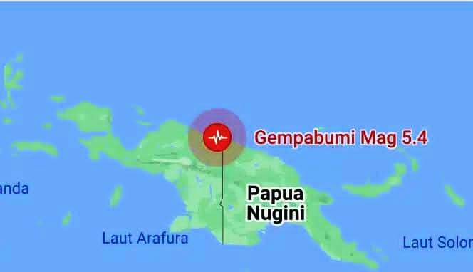 Titik gempa berkekuatan magnitude (M) 5,4 di Jayapura, Kamis (9/2/2023).