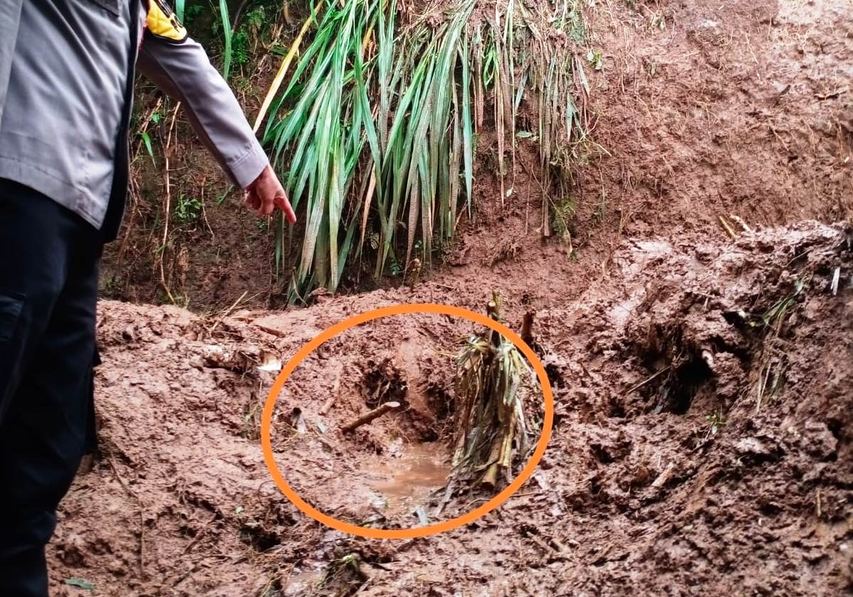 Aparat tunjukkan lokasi korban tanah longsor, Senin (24/4/2023)