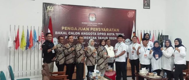 Kedatangannya guna menyerahkan berkas pendaftaran Bakal Calon Legislatif (Bacaleg) anggota DPRD Kota Tegal.