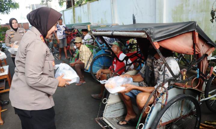 Kapolres Subang AKBP Sumarni berbagi ke tukang becak di Subang, Selasa (6/6/2023)