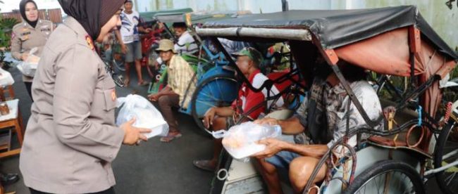 Kapolres Subang AKBP Sumarni menyampaikan kegiatan yang dilakukannya untuk meringankan beban tukang becak karena penghasilan mereka sangat minim akibat sepinya penumpang sambil juga mengajak Abang Abang becak untuk terlibat menjaga keamanan di lingkungan kerja atau lingkungan tempat tinggalnya,” jelas Kapolres.