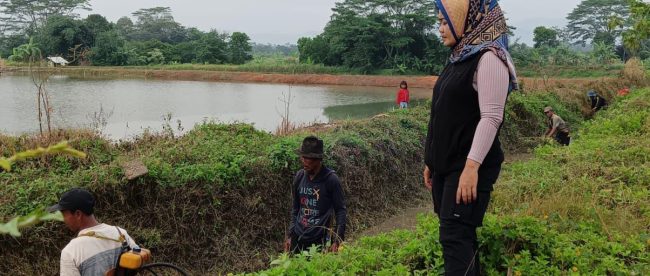 Nuning Runingsih selaku kepala Desa Cisaga turut serta membantu masyarakat kerja bakti membersihkan saluran irigasi demi kenyamanan bersama.