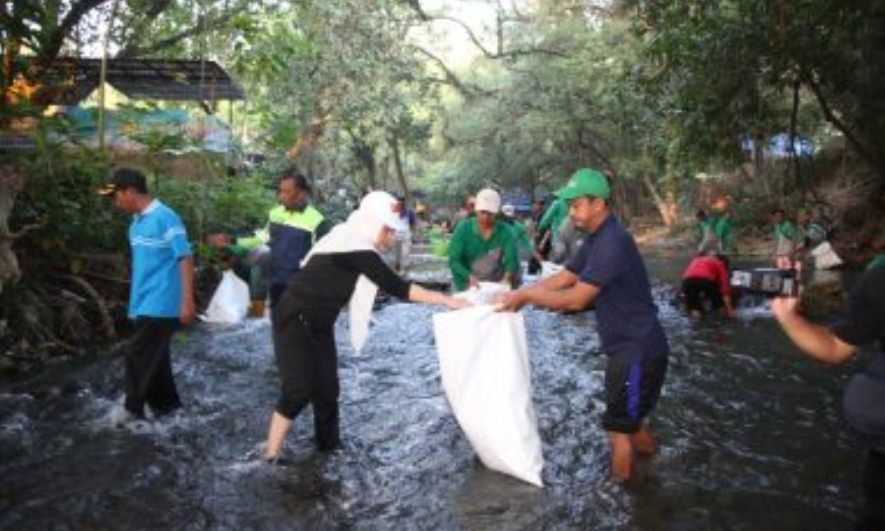 Bupati Bojonegoro bersama warga bersih-bersih Sumber Mata Air Grogolan di Desa Ngunut Kec. Dander, pada Minggu (11/6/2023)