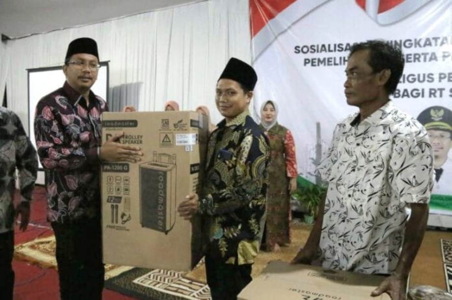 Bupati Sidoarjo, Ahmad Muhdlor, membagikan sound sistem untuk ribuan RT.